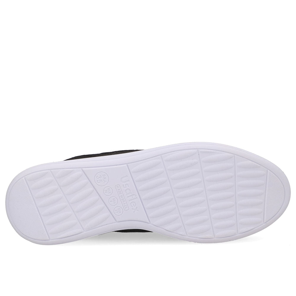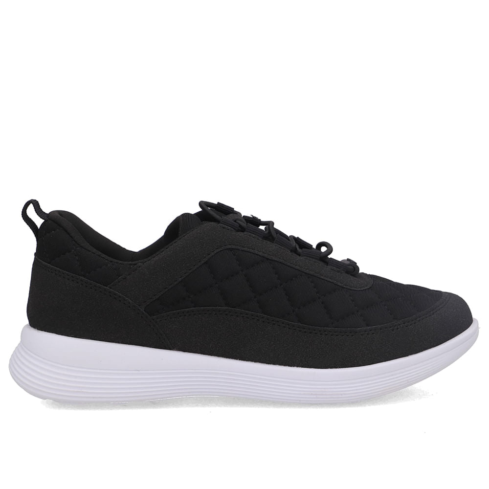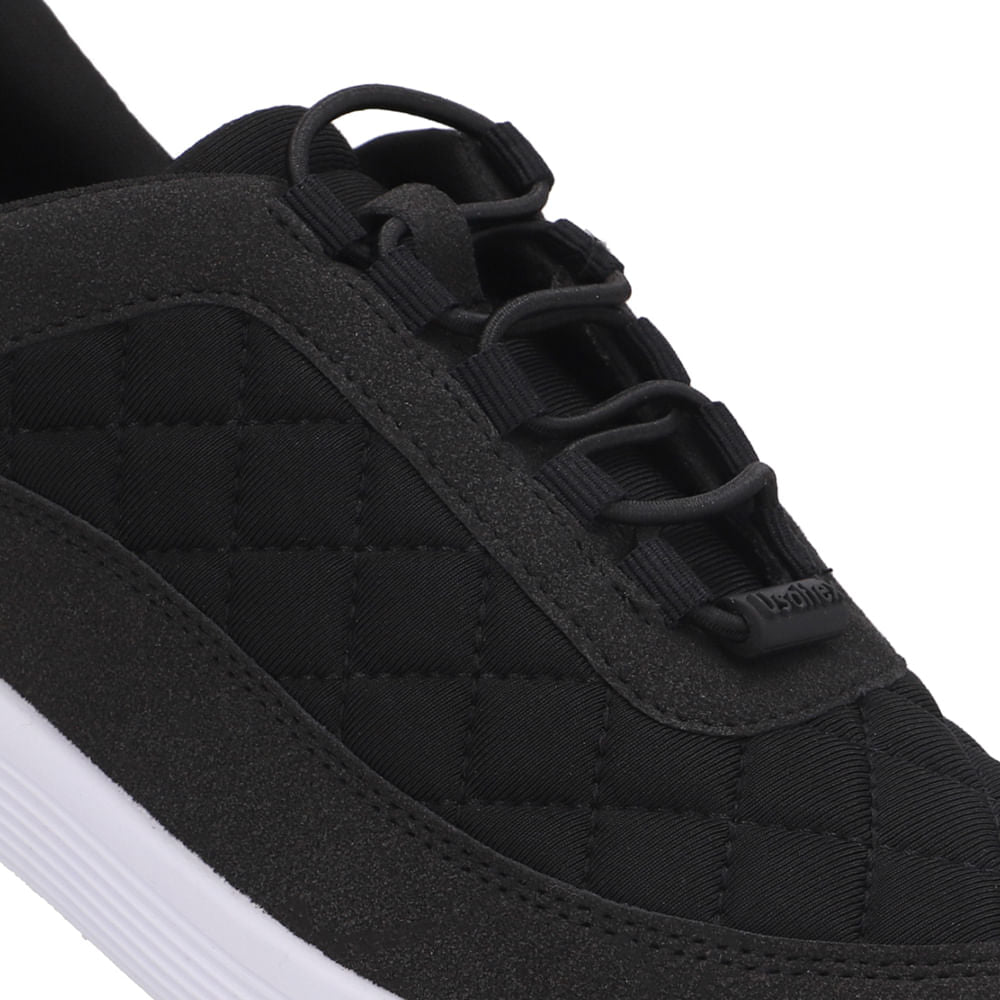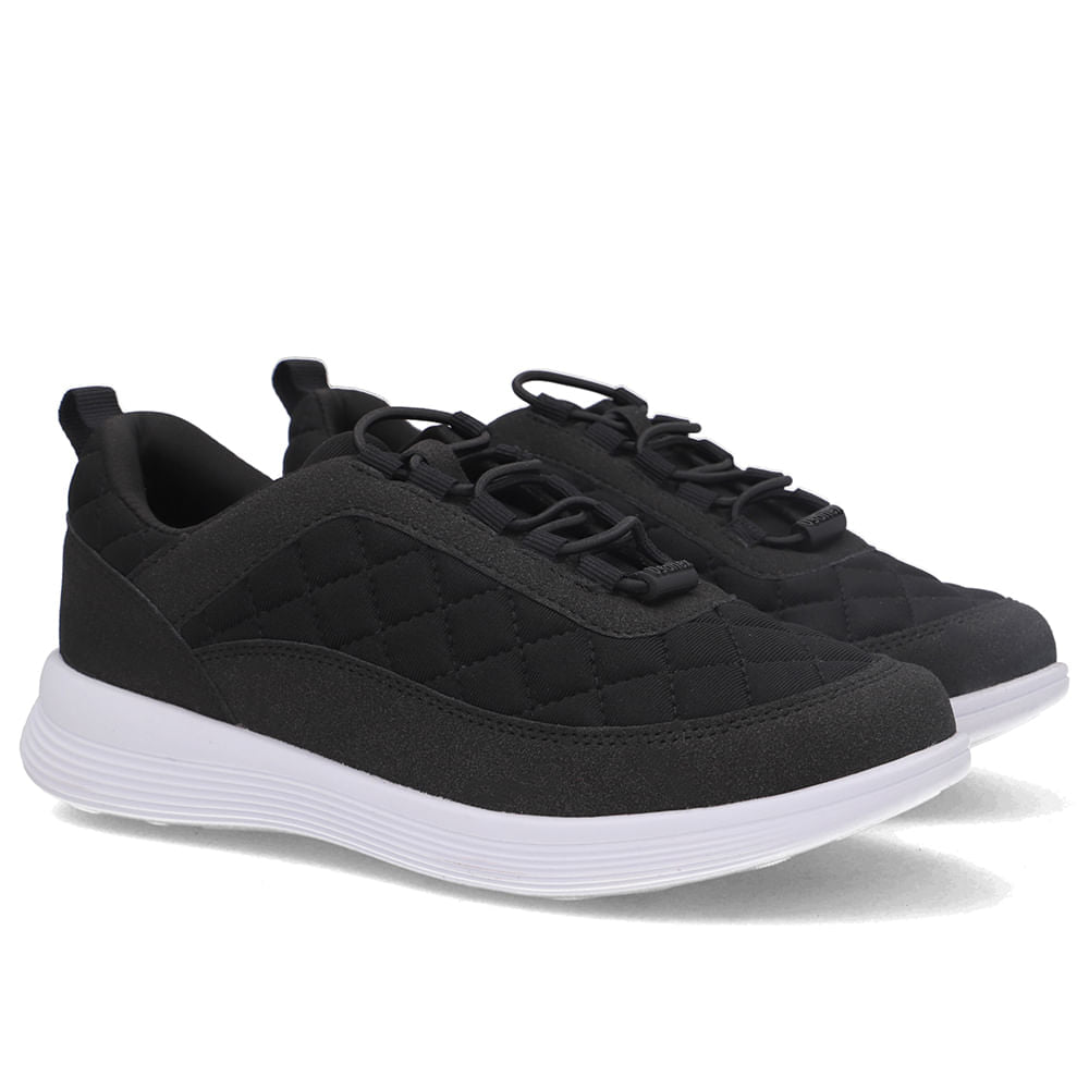 Tênis cabedal em tecido elastano na cor preto. Design anatômico pensado para tornar o momento de calçar mais fácil e prático.